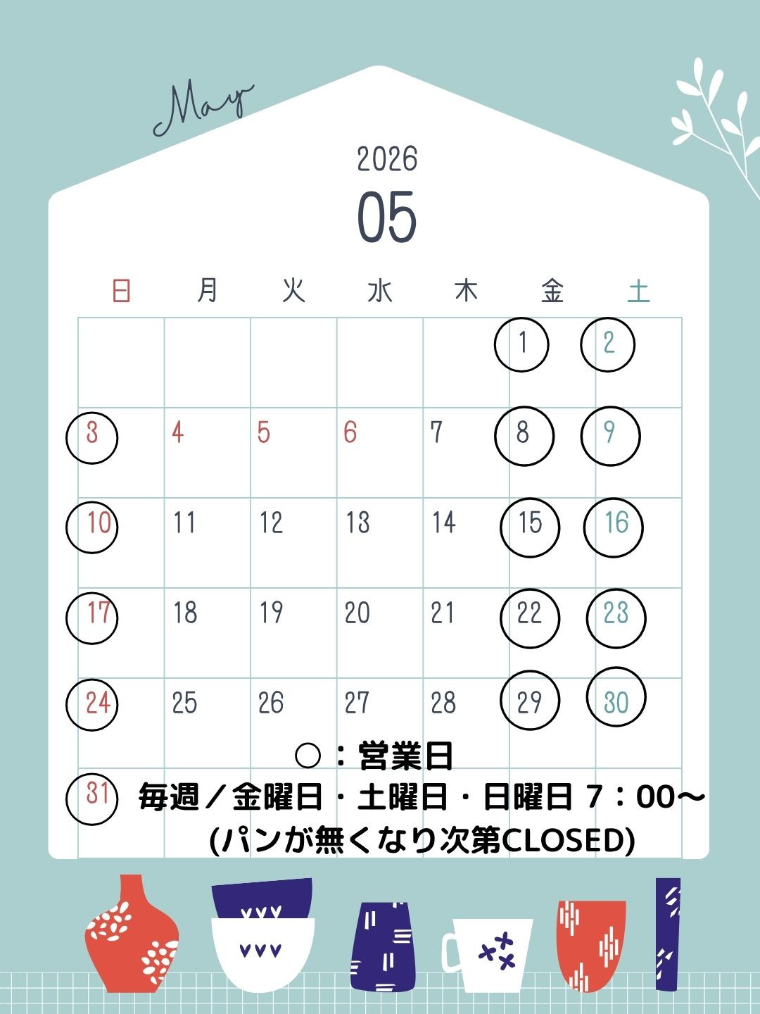 5月の営業日カレンダーが出来ました。